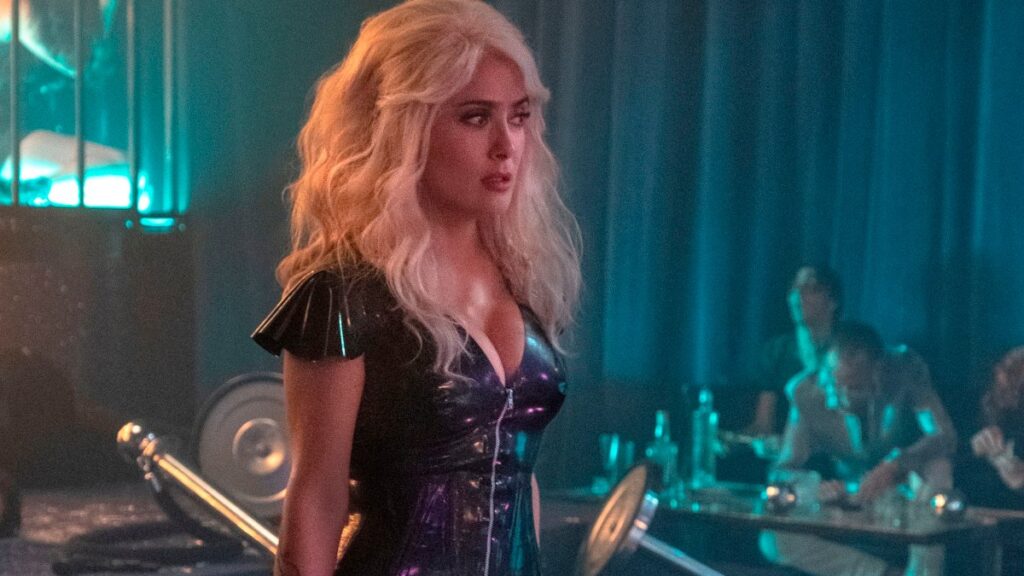 Hayek entra como un ciclón en el humor de “Hitman’s Wife’s Bodyguard” dando vida a la esposa de “Darius Kincaid” (Samuel L. Jackson), el sicario que el guardaespaldas “Michael Bryce” (Ryan Reynolds) debía proteger en la primera película.
