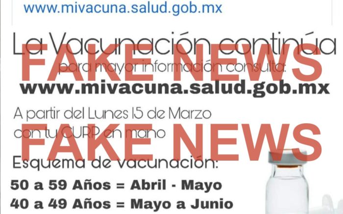 “Es una noticia falsa. La plataforma mivacuna.salud.gob.mx es legítima del Gobierno de México, donde pudimos registrar a las personas adultas mayores de 60 años.