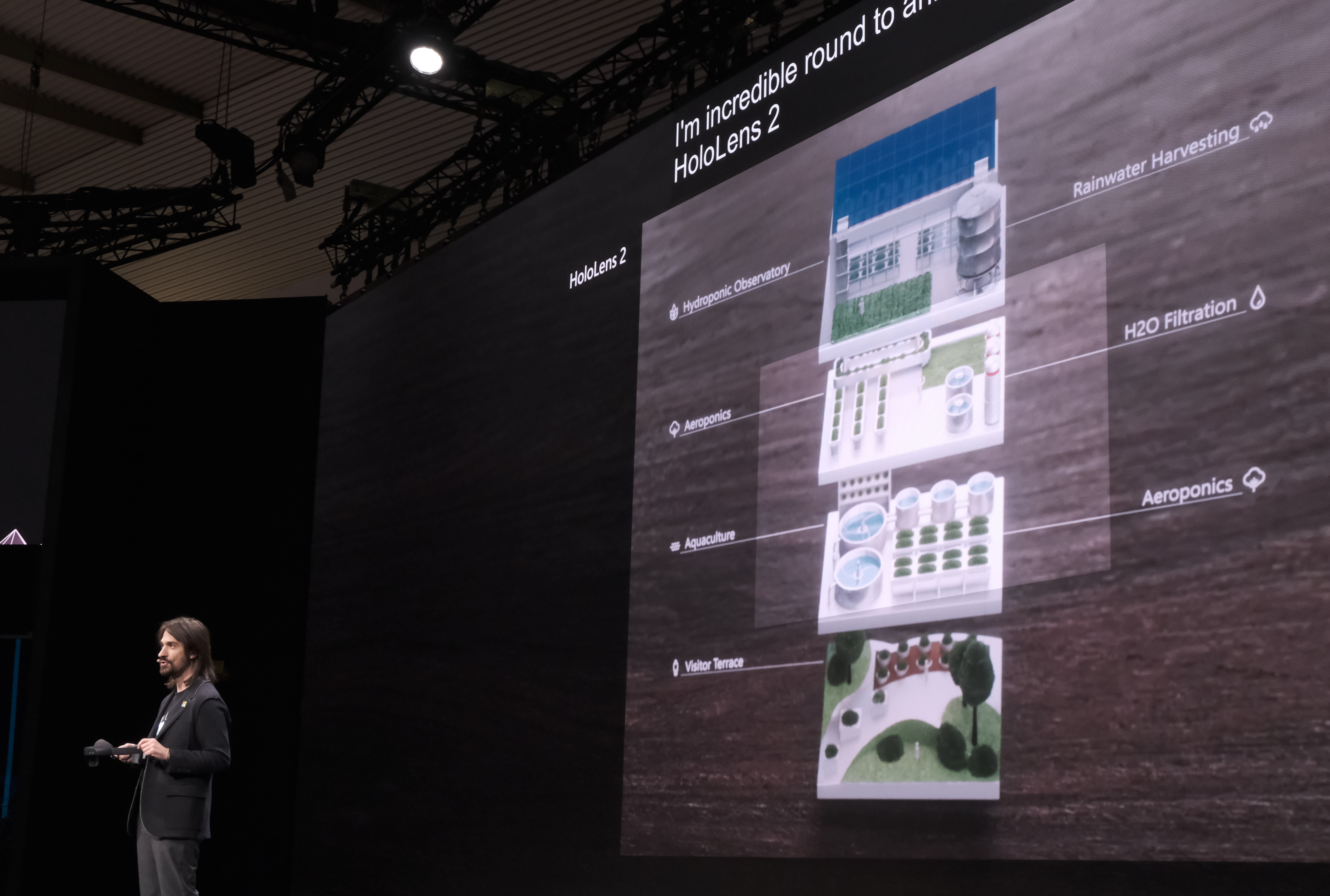 "Cuando cambias la forma en que ves el mundo, cambias el mundo que ves", dijo la CEO de Microsoft, Satya Nadella, repitiendo una línea del primer anuncio de HoloLens de la compañía hace cuatro años. Señaló que cree que conectar el mundo físico con el mundo virtual transformará la forma en que trabajaremos.