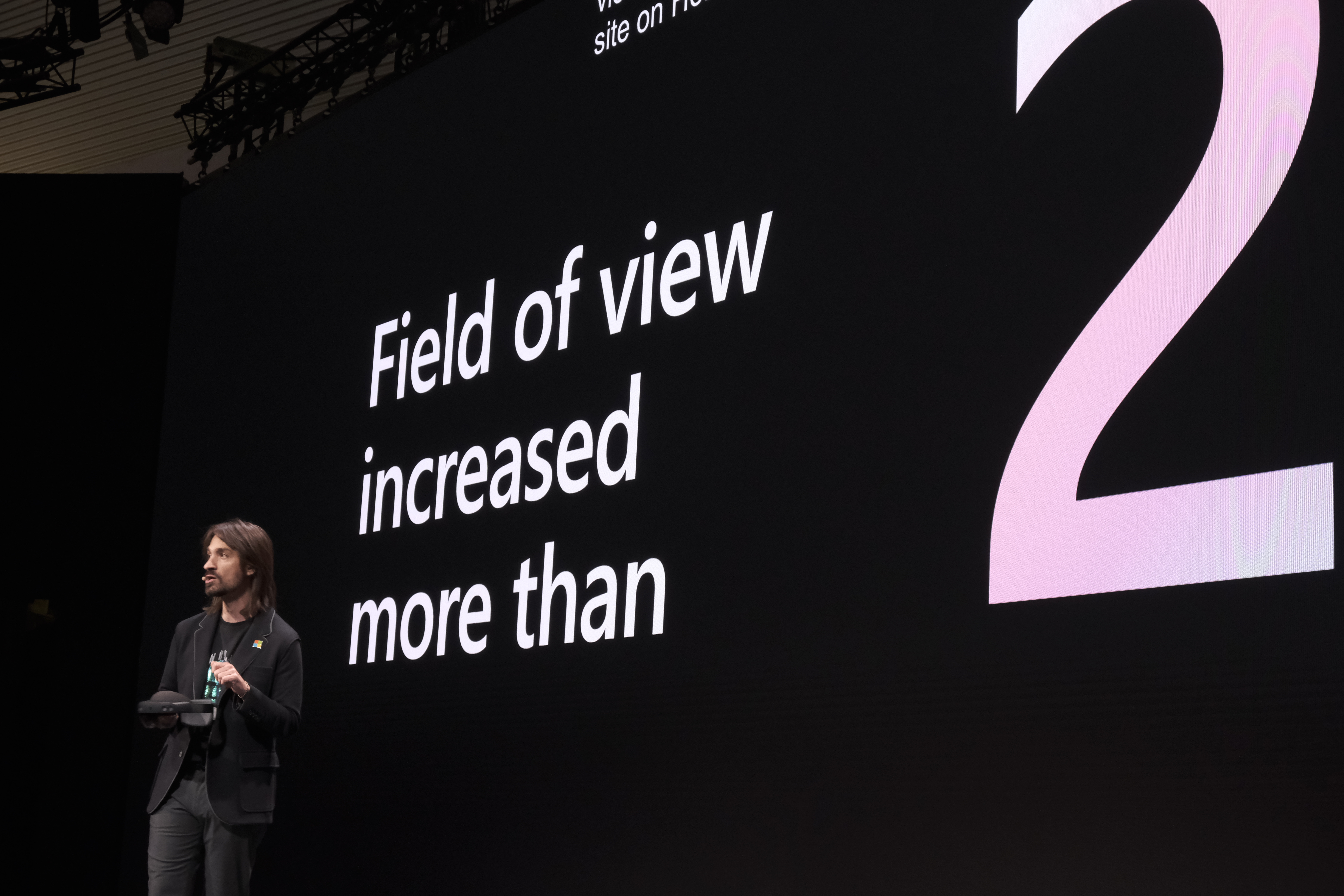 Uno de los golpes contra los HoloLens originales fue su limitado campo de visión. Cuando lo que querías mirar era pequeño y justo delante de ti, el efecto era sorprendente. Pero cuando movió la cabeza un poco o miró un objeto más grande, de repente se sintió como si estuviera mirando a través de una pantalla del tamaño de un sello. HoloLens 2 presenta un campo de visión que es dos veces más grande que el original.