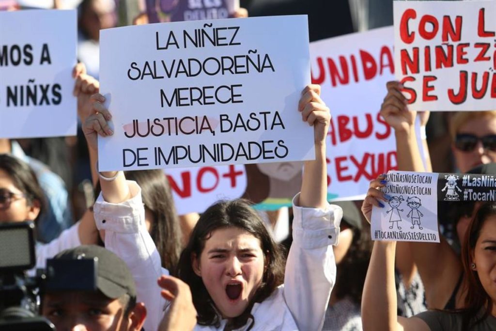 Ciento de mujeres se concentraron el lunes frente al Centro Judicial de la capital salvadoreña para protestar por el reciente fallo de un Tribunal Superior de Justicia que resolvió que no hubo agresión sexual contra una niña de diez años, sino una falta llamada “actos contrarios a las buenas costumbres y al decoro público”.