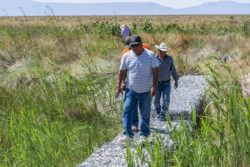 El semanario recorrió con los ejidatarios del valle algunos de los puntos de la Saca Salada. Puntos en donde Pronatura Noreste había colocado estructuras de control para disminuir la velocidad del líquido, restaurar cuerpos de agua y fomentar la recarga de acuíferos. Pero esas estructuras fueron derribadas ya por los agricultores.