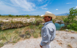Leobardo Sánchez García, ejidatario y representante legal de los agricultores mira el contraste entre el verdor del valle y la sequia que lo amenaza. Foto: Omar Saucedo
