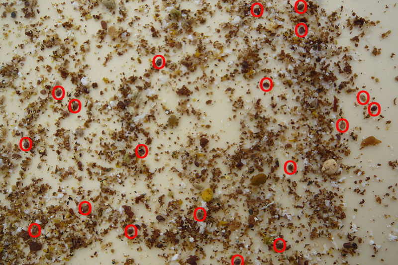 Los apicultores, gente que se preocupa por su corazón, obviamente, quieren evitar esto. Pero la solución ha sido colocar una superficie plana debajo de una colmena y extraerla cada pocos días, inspeccionando todos los desperdicios, suciedad y otros desperdicios de colmenas en busca de los diminutos cuerpos de los ácaros. Es un trabajo laborioso y laborioso, y por supuesto, si echa de menos a algunos, podría pensar que la infestación está mejorando en lugar de empeorar.