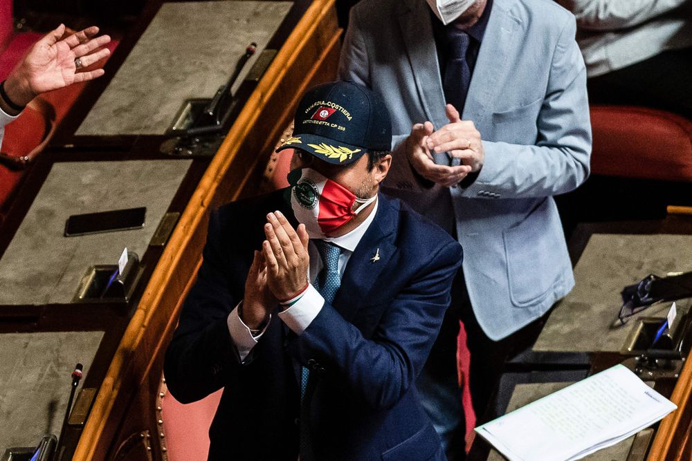 Matteo Salvini, con una gorra de la Guardia Costera italiana, este jueves en el Senado.FRANCESCO FOTIA / AFPMatteo Salvini se jugaba su futuro político. El Senado italiano votaba a media tarde de este jueves si debía serle retirada la inmunidad de la que gozó como ministro cuando fue imputado por retener hace un año la nave de la ONG española Open Arms con 160 migrantes a bordo. Pero el líder de la Liga, que daba por descontado el resultado y no parecía muy preocupado, cogió el coche y puso rumbo a Milano Marittima (Emilia Romaña), en la costa Adriática, para disfrutar de unos días de vacaciones con su familia. Una nutrida escolta y un helicóptero de la policía esperaban su llegada en la puerta del hotel, a solo diez metros del Papeete Beach, el chiringuito donde el año pasado certificó su órdago al primer ministro, Giuseppe Conte, y perdió su cartera como ministro del Interior. La votación en el Senado, más allá del resultado, no era tan mala. Un año después, ha vuelto al discurso más duro contra la inmigración para levantar el vuelo.La mañana de este jueves, Salvini ya sabía que el Senado aprobaría retirarle la inmunidad. Italia Viva, el partido de Matteo Renzi, le había salvado la última vez que se había debatido la cuestión. Pero en esta ocasión se alineó con sus socios de Gobierno (Movimiento 5 Estrellas y Partido Democrático) y votó a favor de mandarle a juicio (149 votos a favor y 141 en contra). De este modo, el líder de la Liga podrá ser procesado, si los magistrados lo consideran oportuno, por secuestro de personas al haber impedido la entrada a un puerto italiano del barco de la ONG Open Arms hace justo un año. El líder de la Liga era entonces ministro del Interior y tomó la decisión en plena escalada de su política de puertos cerrados. Hoy vuelven los ecos de aquella campaña al Parlamento.Es la segunda vez que el Senado manda a juicio a Salvini por el mismo delito. En la ocasión anterior se debió al bloqueo de una nave de la Guardia Costera italiana, Gregoretti, con 131 migrantes a bordo. Entonces fue Salvini quien en una de sus habituales piruetas populistas pidió que sus compañeros de partido le mandaran a juicio. Sin embargo, en este caso el exministro del Interior alega que procedió de manera completamente distinta y que lo hizo en coordinación con el primer ministro, Giuseppe Conte. El resultado final es el mismo y no es tan negativo para sus intereses a corto plazo (si llegase a ser procesado dentro de un año se arriesga a no poder volver a ser candidato a primer ministro). Los focos y la polémica alrededor del fenómeno migratorio insuflan algo de oxígeno al líder ultraderechista en su peor momento de los últimos tres años.Salvini, en caída libre en todos los sondeos —ha pasado de un 32% de estimación de voto en enero, a un 23%, según la empresa Ipsos— ha vuelto a aferrarse a la carta de la inmigración para levantar el vuelo. La crisis de la covid-19 y el buen tiempo han provocado una nueva oleada de llegadas en los últimos días. Las cifras vuelven a ser material inflamable para el Ejecutivo: 561 personas desembarcadas en un solo día, 13.094 llegadas en 2020 (en el mismo periodo del año pasado hubo 3.654). Solo en los primeros 29 días de julio han llegado 6.144 migrantes y algunos centenares han huido de los centros de internamiento en Sicilia en los que fueron registrados. “Defender Italia no debería ser ningún delito”, protestaba Salvini. “No tengo miedo, no me dejaré intimidar y no me silenciarán: recuerdo a todos los parlamentarios que, tarde o temprano, el juicio de los votantes llegará”, lanzó en el Senado.El argumento de la defensa de las fronteras ante una supuesta invasión de inmigrantes ha perdido el tirón electoral durante la pandemia, pero es la única baza que le queda a un Salvini profundamente desdibujado. Todas sus decisiones durante la crisis de la covid-19 han sido erróneas y su socia en la coalición de derechas, Giorgia Meloni (Hermanos de Italia) está cada vez más cerca en los sondeos. Salvini lo ha intentado todo. La última semana incluso se ha apuntado a las teorías negacionistas de la pandemia impulsadas por la ultraderecha. Una nueva ocurrencia que ha terminado de distanciarle de parte de su electorado. Una sentencia desfavorable en el hipotético juicio por el caso Open Arms le costaría la inhabilitación política. Pero, de momento, vuelve a recuperar el foco.
