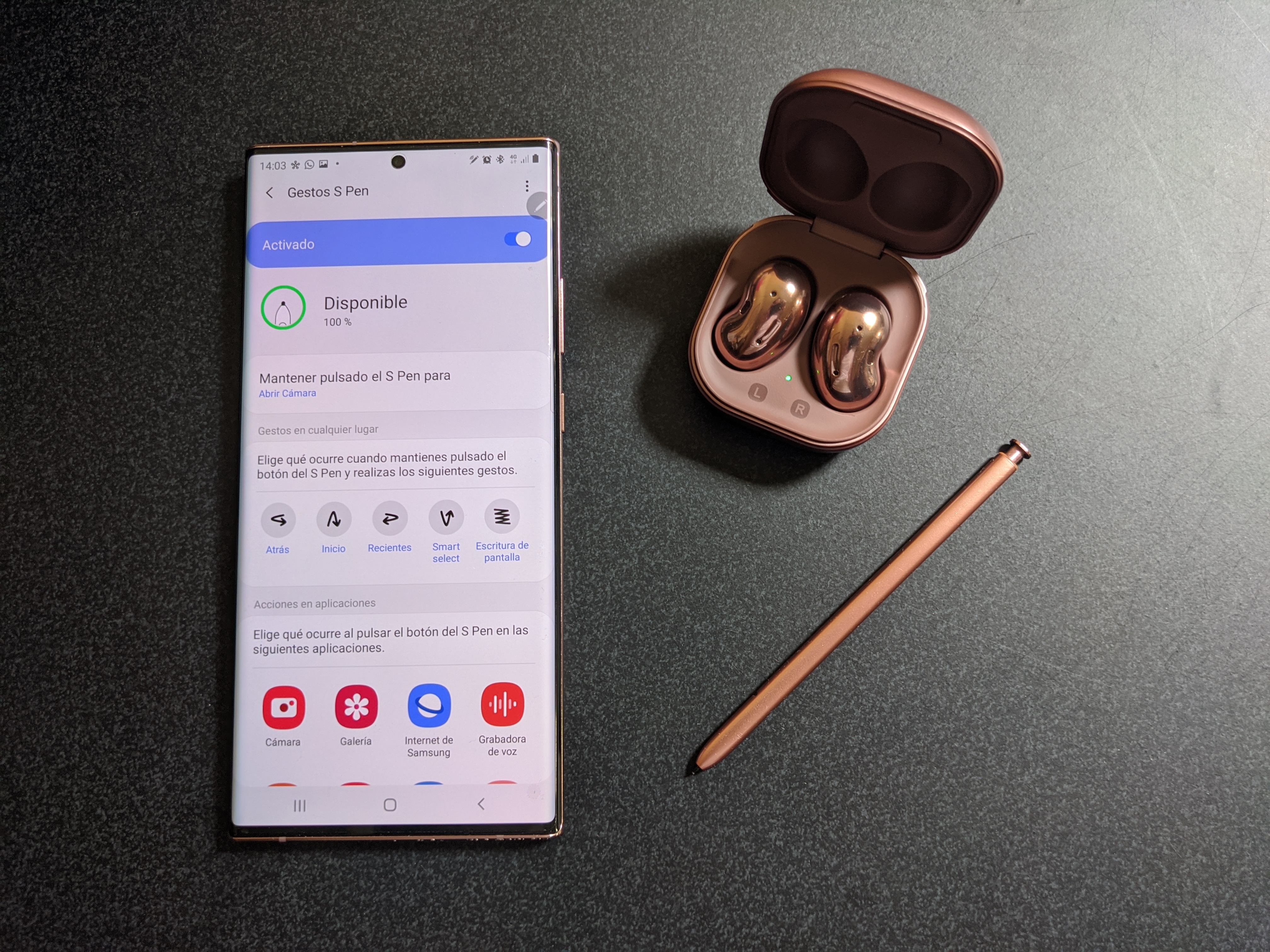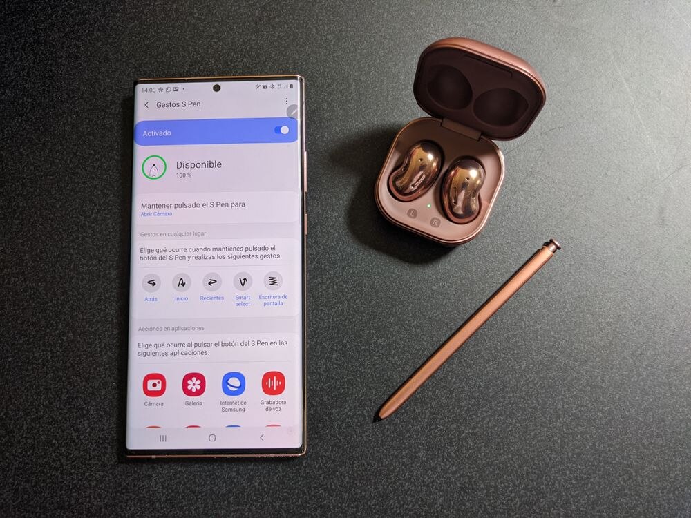 Samsung Galaxy Note 20 UltraIsabel RubioEscribir en la pantalla del Galaxy Note 20 Ultra es bastante similar a hacerlo en una libreta. En este caso, el papel es una pantalla. Y el lápiz, una varita puntiaguda que se saca del propio smartphone. Al hacerlo, es posible tomar notas en una hoja en blanco. Aunque la textura de la pantalla es distinta a la de un papel, cada trazo suena como si realmente se estuviera escribiendo en uno de verdad. Esta varita, ya clásica en los Note de Samsung, es un lápiz óptico que se llama S Pen y sirve también para controlar el móvil con gestos sin tocar la pantalla.La principal mejora del S Pen del Galaxy Note 20 Ultra frente a otros smartphones de la misma familia es la mejora de latencia ―el retraso que se produce entre el toque de la pantalla y la ejecución de la acción―. Es de nueve milisegundos frente a los 46 milisegundos de su antecesor, el Note 10, y los 24 milisegundos del Note 20. En la práctica, las acciones realizadas con el S Pen son instantáneas y no se percibe prácticamente ningún retardo.Esto es especialmente apreciable al escribir en la pantalla. Es posible tomar notas y guardarlas automáticamente desde el ordenador o el móvil en la nube para poder acceder a las mismas desde cualquier dispositivo. El terminal, que está enfocado a fomentar la productividad en el trabajo, transforma cualquier apunte tomado a mano a texto y, en general, los resultados son bastante buenos. El lápiz óptico también se puede utilizar para seleccionar parte de la pantalla y guardar una imagen de ella o extraer el texto de la misma.Entre las funciones más curiosas están “mensajes animados”, que permite personalizar vídeos y fotos con mensajes escritos a mano, y “dibujos AR” que sirve para, una vez activada la cámara, pintar encima de una cara o de cualquier otro lugar. Por ejemplo, al pintarse unos bigotes de gato y comenzar a grabar, la cámara reconoce la cara y sigue sus movimientos de forma que los bigotes aparecen continuamente bien situados en el rostro. La aplicación Penup está pensada para aprender a dibujar mientras se calca una imagen de un vídeo en tiempo real.El S Pen, que resulta especialmente útil si se acostumbra a tomar notas o trabajar con el smartphone, no solo funciona al tocar la pantalla. Puede utilizarse cómo si fuera una varita mágica con solo pulsar un pequeño botón en uno de sus laterales y controlar así el teléfono realizando gestos en el aire. Por ejemplo, un ligero movimiento de muñeca a la izquierda sirve para ir atrás. Hacia arriba, para ir a la pantalla de inicio. Y agitar el lápiz óptico hacia un lado y otro, para poder escribir en una pantalla determinada. Aprender los gestos, que pueden ser personalizados, requiere de un poco de entrenamiento. Especialmente teniendo en cuenta que incluso dentro de aplicaciones como la cámara, la galería, el navegador de Samsung o la grabadora de voz se puede escoger qué ocurre al pulsar el botón del S Pen o al realizar gestos con el mismo. El control por gestos funciona de forma adecuada pero aún hay margen de mejora, ya que en ocasiones el terminal es incapaz de reconocer el gesto realizado.Una pantalla gigante y un módulo que sobresaleEl Note 20 Ultra, que es compatible con las redes 5G y saldrá a la venta en bronce, negro y blanco el 21 de agosto desde 1.299 euros, tiene una gran pantalla de 6,9 pulgadas con curvas en sus laterales. Es difícil manejarlo con una sola mano. Es un terminal que luce mucho por la parte frontal, pero en su trasera el módulo enorme de cámaras sobresale notablemente. Tiene un sensor principal de 108 megapíxeles, un teleobjetivo y un ultra gran angular de 12 megapíxeles cada uno y un sensor de profundidad.Con el terminal, de día las fotografías salen bastante nítidas y con colores vivos y realistas. De noche, se pierde un poco de calidad. En ambos casos se echa en falta un poco más de detalle al acercar las fotografías con la lupa. El terminal cuenta con un modo de captura única que aprovecha la inteligencia artificial para ofrecer diferentes versiones del mismo momento usando cada una de sus cámaras. Es una función que puede resultar interesante de cara a escoger imágenes o vídeos realizados a la vez desde diferentes ángulos o con distintos filtros y compartirlos en redes sociales. La cámara permite además capturar vídeo en 8K. En general, se consigue buena definición, especialmente cuando las tomas se realizan en exteriores y a plena luz del día.Mientras que el Note 20 tiene una tasa de refresco de 60 Hz, el Note 20 Ultra permite utilizar 60 Hz o 120 Hz en función del contenido. La tasa de refresco es la cantidad de veces que la pantalla actualiza la imagen que muestra por segundo. Cuanto mayor sea, más fluida es la experiencia pero también el terminal consume más batería. El usuario puede escoger si prefiere usar una frecuencia de actualización de pantalla de 60 Hz para prolongar la duración de la batería o que la tasa se ajuste automáticamente entre 60 Hz y 120 Hz dependiendo del uso.La batería del smartphone es de 4.500 mAh. Con un uso normal, se extiende a lo largo de todo el día. Pero con un uso intensivo y permitiendo la tasa de 120 Hz le cuesta alcanzar la jornada completa. Samsung presume de que es posible dotar al terminal del 50% de la batería en 30 minutos. Lo cierto es que no es la carga más rápida del mercado, pero permite cargar el dispositivo en poco más de una hora.El Note 20 Ultra tiene un procesador Exynos 990, 8 o 12 GB de RAM y 256 o 512 GB de almacenamiento, que se puede ampliar con una microSD de hasta 1 TB. El terminal probado por este periódico tiene 12 GB de RAM y 256 GB de almacenamiento. El rendimiento del smartphone es bueno tanto en las acciones cotidianas como al jugar o editar vídeos. Tal y como se puede esperar de un teléfono de gama alta, el Note 20 Ultra ejecuta las aplicaciones rápidamente y sin ningún tipo de lag o retardo.Los auriculares in