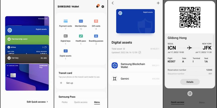 En cuanto a algunas de las otras cosas que los usuarios pueden hacer con la nueva billetera móvil de Samsung, la compañía dice que las personas pueden usarla para verificar las identidades de las personas con sus datos biométricos para ayudarlos a iniciar sesión rápida y fácilmente en aplicaciones y servicios, así como almacenar documentación. como prueba de vacunación contra el COVID-19. Samsung también dijo que más adelante este año, la billetera admitiría identificaciones oficiales, como licencias de conducir e identificaciones de estudiantes de instituciones seleccionadas. Además, Samsung Wallet admitirá las tarjetas de embarque de Korean Air, pero no está claro cuándo agregará soporte para más aerolíneas.