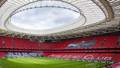Tres grandes pancartas adornan los graderíos de San Mamés. Una en cada uno de los fondos con las leyendas “Jo ta ke irabazi arte” (Sin parar hasta ganar) y ”Gurea da garaipena” (Esta es nuestra victoria) y otra en la tribuna situada frente a los banquillos con un león rugiendo en plena tormenta. Desde el vídeo marcador se están ofreciendo un amplio número de mensajes en apoyo al Athletic.