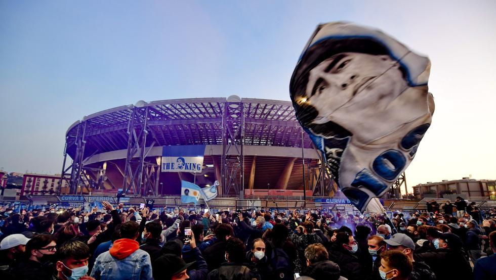 El alcalde de la ciudad, Luigi De Magistris, ha propuesto que el coliseo lleve el nombre del astro argentino, que militó en el conjunto napolitano entre 1984 y 1991, conquistando dos títulos ligueros (1987 y 1990), una Copa UEFA (1989), una Copa Italia (1987) y una Supercopa italiana (1990). De Laurentiis, presidente del Nápoles, confirmó que el nombre del estadio cambiará en honor al mítico 10.
