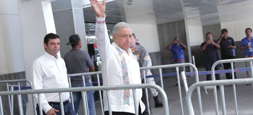 Durante este trayecto fueron puestas vallas de contención vigiladas por elementos de la guardia nacional y elementos de la ayudantía. A su salida, López Obrador fue abordado por pasajeros del vuelo de Aeroméxico 332 quienes le pedían fotografías. “Sí, pero con sana distancia”, les concedía el jefe del Ejecutivo federal.