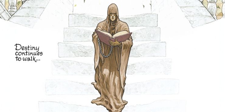 Apareciendo como un anciano encapuchado, Destiny es la encarnación del destino. Él sabe todo lo que ha sucedido y todo lo que sucederá. pasar a todos y todo lo que alguna vez fue y alguna vez será. Todo está escrito en su gran libro que cuenta la historia del universo, que ha memorizado.