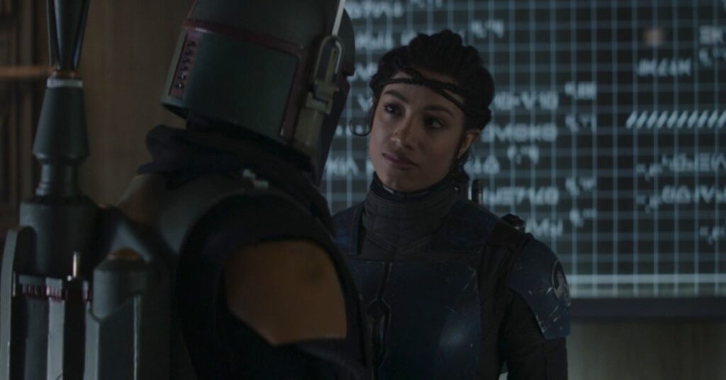 Como sabemos por el final de temporada, Reeves y Bo-Katan tenían papeles que desempeñar, formando equipo con Mando (Din Djarin), Cara Dune, Boba Fett y Fennec Shand para enfrentarse a Moff Gideon y recuperar el Darksaber. Terminaron haciendo precisamente eso, aunque no antes de que Reeves y Fett tuvieran un emocionante tiroteo.