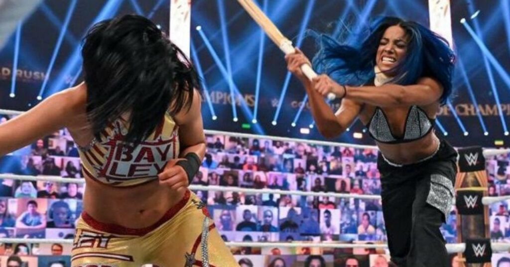 Sasha Banks hizo una aparición sorpresa durante el domingo Choque de campeones pay-per-view atacando a Bayley con un palo de kendo luego de su improvisada defensa del título contra Asuka. “The Boss” todavía sufría notablemente la lesión en el cuello que Bayley le había causado semanas antes, pero aún así logró enviar a “The Role Model” a trepar por la rampa de entrada. Bayley traicionó a su ex mejor amiga después de que las dos no pudieron recuperar los Campeonatos de Parejas Femeninas de la WWE, luego afirmó que solo estaba usando a Banks como Banks estaba tratando de usarla.