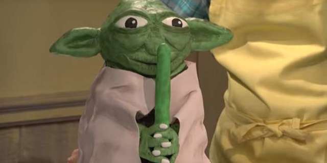 Luego el boceto llega al personaje de Kyle Mooney. Eligió a Yoda como su inspiración, que los jueces permiten a pesar de que Yoda no es un personaje de dibujos animados. Mooney revela un pastel con Yoda en una pose sugestiva. Cuando se le pregunta qué sostiene Yoda, no va con el sable de luz Jedi como podría esperarse, sino que dice que es el "pene famoso" de Yoda.