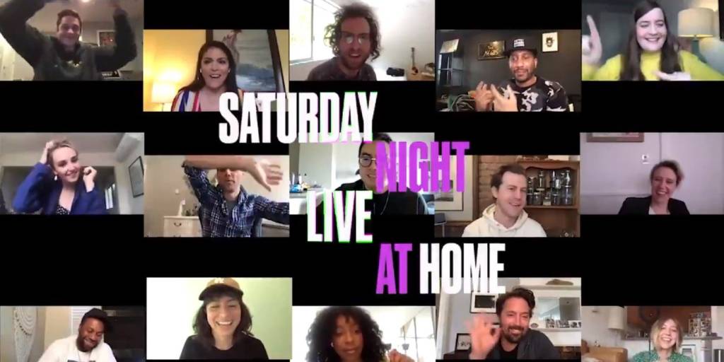 Después de estar fuera del aire durante varias semanas, SNL decidió hacer una versión “en casa” del programa el 11 de abril. Esto significaba pregrabar bocetos y monólogos individualmente, así como la interacción ocasional a través de Zoom. El programa no tuvo un presentador tradicional, pero hubo un monólogo de apertura de Tom Hanks, una de las primeras celebridades en dar positivo por el coronavirus. El episodio fue bien recibido por muchos fanáticos, señalando el esfuerzo realizado para ofrecer un espectáculo divertido en circunstancias inusuales.