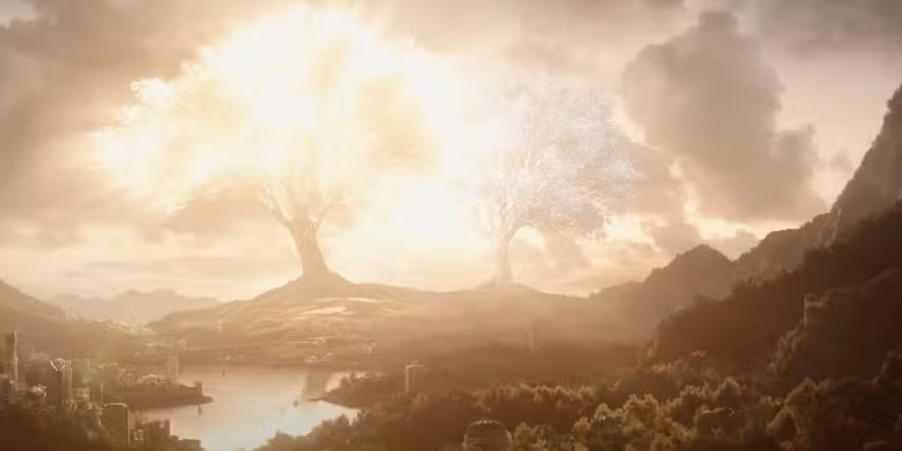 Morgoth continuó con sus maquinaciones incluso bajo la atenta mirada de los Valar y viajó a los confines del sur de las Tierras Imperecederas. En ese momento, se encontró con el espíritu. Ungoliant: una entidad de pura oscuridad y consumidora de luz.. Conspirando para destruir lo que más amaban los Valar: los Dos Árboles de Valinor. Morgoth convenció a Ungoliant para que se uniera a su causa.. Su siniestro plan se llevó a cabo: Morgoth atravesó los Dos Árboles y Ungoliant bebió su luz divina.