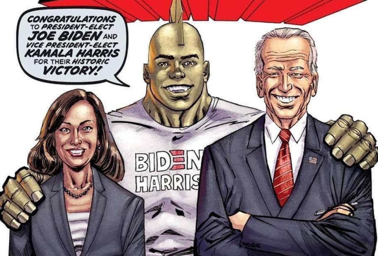 Con Joe Biden como el ganador proyectado de las elecciones presidenciales de los EE. UU. 2020, el fundador de Image Comics, Erik Larsen, reutilizará el arte que usó cuando Dragón salvaje El personaje principal Malcolm Dragon respaldó a Biden y su compañera de fórmula Kamala Harris por una variante de segunda impresión en la que Malcolm en cambio felicita a la pareja por su victoria. Originalmente una portada variante para el recientemente lanzado Dragón salvaje # 253, la imagen ahora será la portada principal / única para la segunda impresión, aunque con su fondo verde cambiado por blanco. Este es el segundo Dragón salvaje número en una fila, y el tercero de los últimos cuatro números publicados, para volver atrás para al menos una impresión adicional.