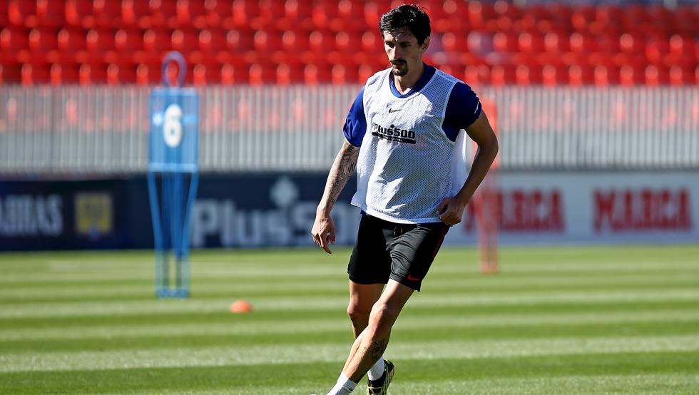 Stefan Savic fue el jugador del Atlético de Madrid encargado de acompañar a Diego Simeone en la rueda de prensa oficial previa al encuentro del martes ante el Salzburgo en el Metropolitano.