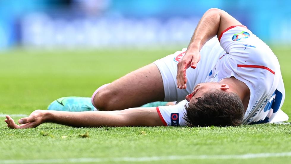 El colegiado del encuentro, el español Carlos del Cerro Grande, ha señalado la pena máxima, a instancias del VAR, tras revisar la jugada en el monitor de campo del estadio de Hampden Park (Glasgow). El aparatoso golpe en la cara le ha ocasionado a Schick una importante hemorragia nasal que ha tenido que ser taponada con unos algodones. El jugador checo, de 25 años, no ha parado de sangrar, aunque ello no le ha impedido lanzar y transformar el penalti con gran decisión.
