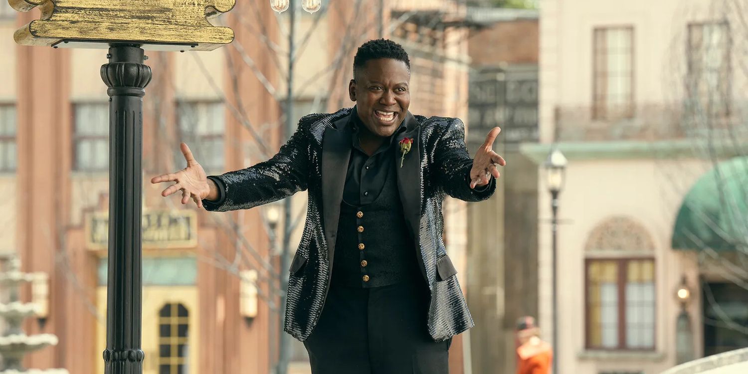 Tituss Burgess es uno de los pocos nuevos miembros del reparto en Schmigadoon! temporada 2, asumiendo el papel de The Narrator, que es una parodia parcial de The Leading Player de Reineta. Ayuda a avanzar en la historia y recuerda a los espectadores lo que sucedió con Josh y Melissa entre episodios a través de la canción. Burgess no es ajeno a los musicales, ya que se hizo un nombre en espectáculos de Broadway como La Sirenita y chicos y muñecas antes de tener su papel destacado en la pantalla como Titus Andromedon en Kimmy Schmitt irrompible.