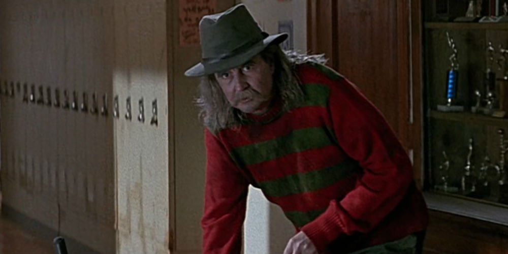 Antes de la muerte de Himbry, le molestaba un molesto sonido de golpeteo y fue a descubrir la fuente. Saludándolo en el pasillo estaba el conserje residente de Woodsboro High, Fred, interpretado por Wes Craven en un giro muy breve. Craven's Fred lleva naturalmente el sombrero, el suéter a rayas y los pantalones negros de Freddy Krueger. Craven también luce una larga peluca y bigote, presumiblemente para que sea menos reconocible a primera vista. En un toque realmente agradable que solo los fanáticos acérrimos de Freddy notarán, el suéter que Craven's Fred lleva puesto Gritar no tiene rayas en los brazos. Todos Pesadilla las secuelas ponen rayas en los brazos del suéter de Freddy, incluso el de Craven Nueva pesadilla, pero la película original no los incluyó. Es una distinción apropiada, como nadie sabría una pesadilla en la calle Elm mejor que Craven.