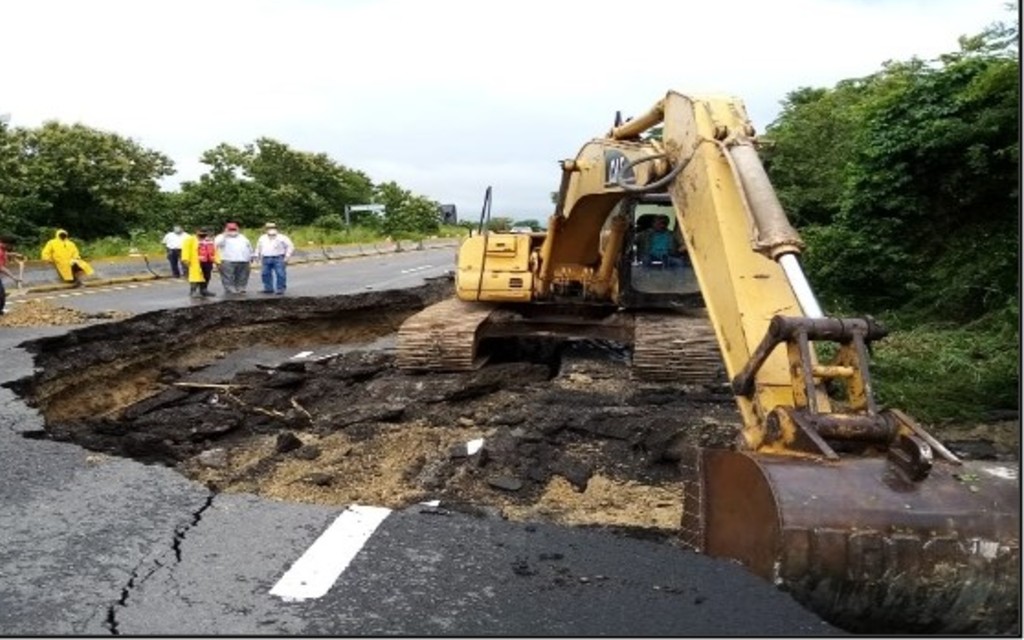 Asimismo, se produjo un hundimiento en el kilómetro 122+520 de la carretera Coatzacoalcos-Villahermosa, tramo Cárdenas-Villahermosa, en los cuerpos A y B. Lo anterior derivado de la fuga de aguas residuales de una tubería de asbesto.