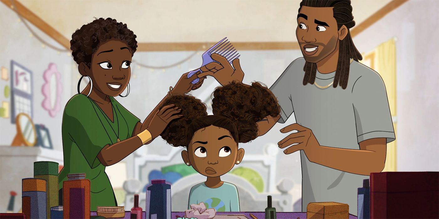 Matthew Cherry: Sí, Hair Love ha tenido muchas vidas diferentes. También es un libro ilustrado que está muy bien hecho. Entonces, creo que al principio, cuando hicimos nuestro impulso inicial, estábamos pensando: “Hombre, ¿cuál sería la mejor manera de tratar de ampliar esto? ¿Tiene sentido una película o un programa de televisión?” Y creo que un programa de televisión siempre tuvo más sentido solo porque tienes esta dinámica familiar. Incluso en el cortometraje, a pesar del hecho de que no hablaron, había toda esta historia de fondo e historia que estaba implícita. Y fue realmente divertido tomarlos de estos personajes que realmente no tienen diálogo y la historia avanza con la partitura y la música para darles voces y cómo serían sus personalidades. ¿Cuáles son los diferentes conflictos y todas las cosas que necesitas para hacer una televisión convincente?