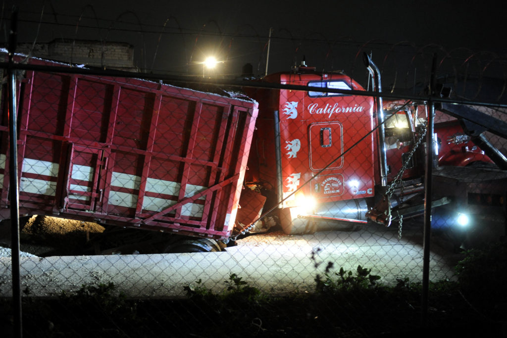 La noche de este jueves, un tráiler que transportaba 40 toneladas de grava se hundió cuando circulaba por la avenida Manuel Ávila Camacho, en la colonia el Chamizal, en Ecatepec.