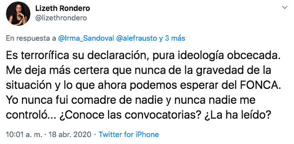 — Alejandra Frausto (@alefrausto) April 18, 2020
