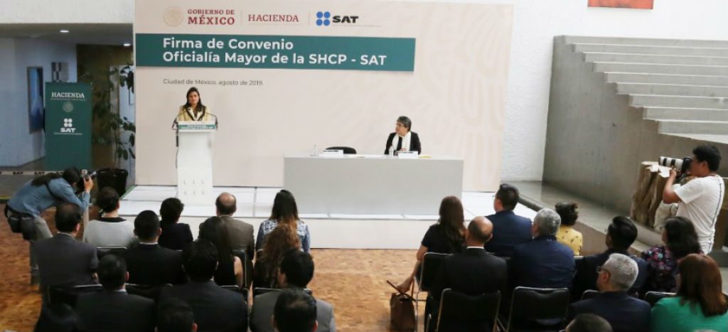 Ser buen mexicano es cumplir con nuestras obligaciones”, agregó la titular del organismo recaudador, acompañada por la titular de la Oficialía Mayor de la SHCP, Raquel Buenrostro Sánchez, con quien firmó el convenio de colaboración entre ambas instancias.