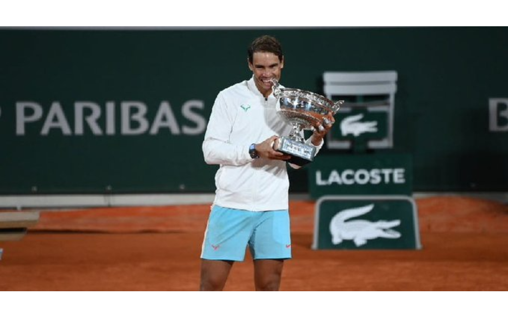 Rafael Nadal conquistó de manera autoritaria su décimo tercer título de Roland Garros, tras arrollar 6-0, 6-2 y 7-5 a Novak Djokovic, e igualar así al suizo Roger Federer como los máximos ganadores de torneos Grand Slam de la historia, ambos con 20 en su palmarés.