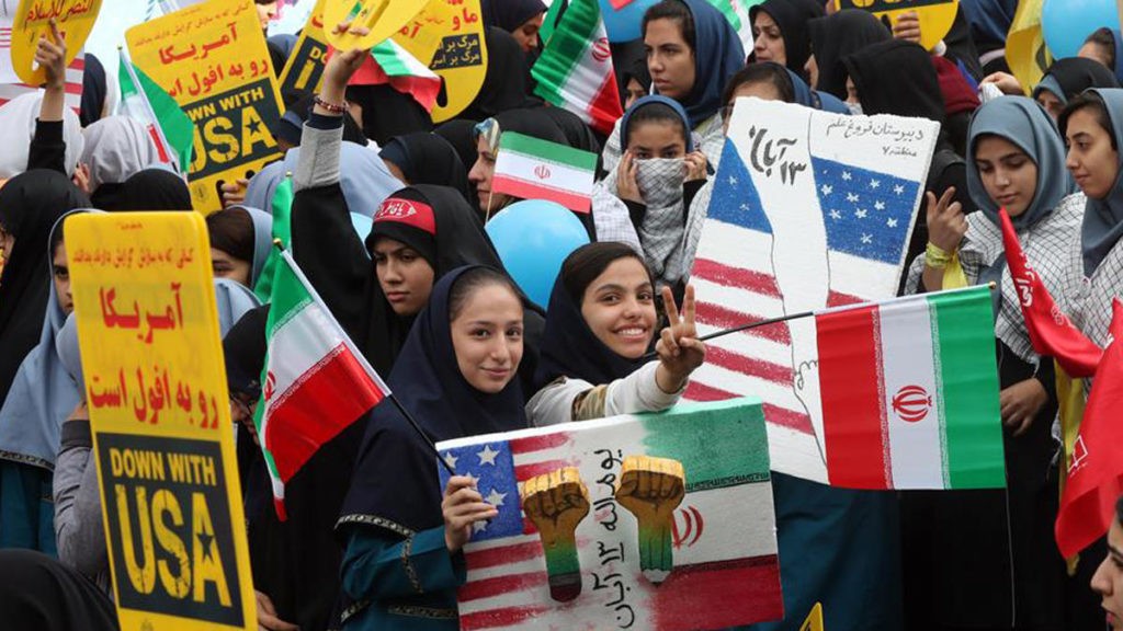Decenas de miles de personas conmemoraron así la toma de la embajada y de 52 diplomáticos como rehenes el 4 de noviembre de 1979 durante 444 días, lo que desencadenó un enfrentamiento entre ambos países que aún perdura.