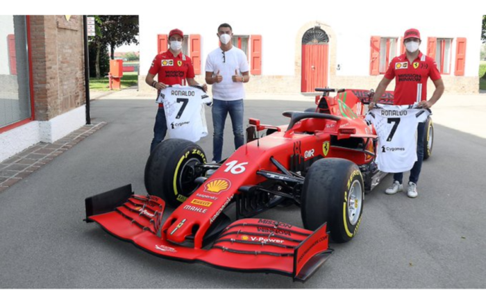 El astro portugués de la Juventus de Turín visitó las instalaciones de Ferrari, donde conoció a los pilotos Charles Leclerc y Carlos Sainz Jr.