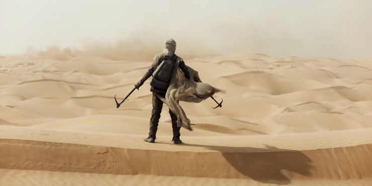 Los verdaderos maestros de Arrakis son los gusanos de arena gigantes que deambulan por el desierto profundo, conocidos por los Fremen como Shai-Hulud. DunaEl tráiler muestra brevemente a un Fremen montando un gusano de arena, y en la película, Fremen Jamis se le aparece a Paul en una visión mientras sostiene ganchos de creador, que los Fremen usan para montar la espalda de Shai-Hulud. Sin embargo, la película nunca muestra realmente cómo los Fremen hacen esto, solo ofrece pistas sobre cómo se logra. En los libros, los Fremen sacan a un gusano de arena de las dunas utilizando un golpe, cuyo ritmo repetitivo es irresistible para Shai-Hulud. Después de colocar estratégicamente uno o más golpeadores, los Fremen se mueven con el flujo del gusano de arena y usan cuerdas y ganchos de fabricación para subirse a su espalda. Los ganchos del fabricante también se pueden utilizar para tirar del gusano de arena hacia la dirección en la que el ciclista quiere viajar. Mientras que el primero Duna película solo se burla de montar gusanos de arena, es probable que la secuela revele todo el proceso desde la perspectiva de Paul.