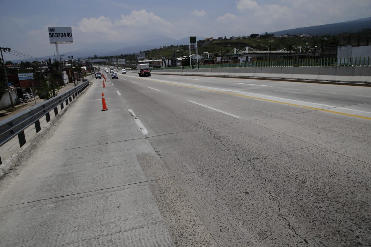 Fidel Giménez Valdés, secretario de Obras Públicas en Morelos, informó que solicitó a la dependencia federal que la zona de la nueva grieta y el muro dañado sea analizada a través de un georadar con el fin de descartar la existencia de un hueco debajo de la superficie de rodamiento, pero sin dañarla más.