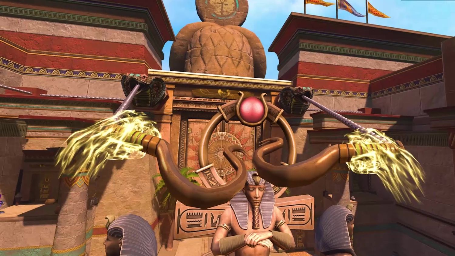Aquí también pudimos probar los ayudantes desbloqueables en La ira de Asgard 2, y Sanzaru Games han mantenido un control bastante estricto sobre la amplitud de estos héroes, cada uno de los cuales parece seguir el modelo de dioses egipcios. Esto influye en su naturaleza animal dinámica; Cada uno de los ayudantes funciona como una especie de montura, y sus diversas habilidades influyen en la resolución de acertijos, estilos de combate alternativos y recorrido del terreno. Un menú simple permite a los jugadores llamar a un ayudante específico, despedirlo o transformarlo entre sus formas humanoide y animal. Sin ninguna razón en particular que podamos determinar, estos compañeros también solicitarán un choque de puños o un golpe, una pequeña interacción encantadora que nunca pareció envejecer; se siente palpablemente terrible “dejarlos colgados”.