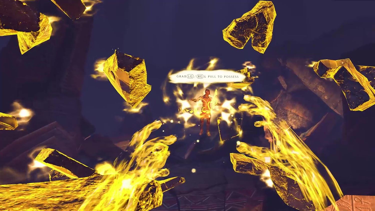 Como Guardián Cósmico, los jugadores habitarán en otros héroes además de Abraxas y, aunque todavía no pudimos ver el mundo desde sus ojos, pudimos experimentar el modo único del juego “Godscale” en varias ocasiones. En estos escenarios, el jugador se expande hacia una enorme forma etérea que deja al ahora minúsculo héroe en su lugar, lo que permite al Guardián Cósmico manipular elementos del espacio circundante para ayudar a alcanzar una meta o un cofre del tesoro. Durante Godscale pudimos saltar rápidamente entre héroe y dios, resolviendo pieza por pieza el rompecabezas de la habitación más grandiosa.