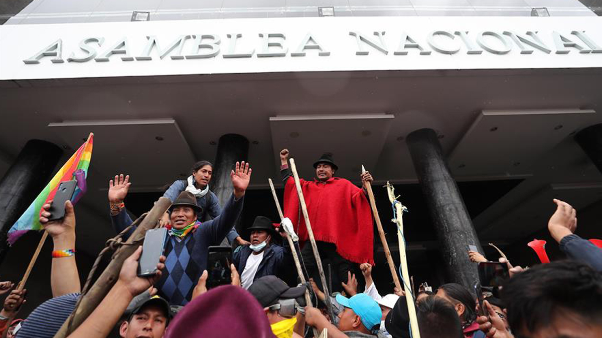 La sede del Parlamento ecuatoriano fue tomada por el lapso de aproximadamente una hora por manifestantes de sectores indígenas, que desde primera hora se concentraron en un parque de la capital, Quito, en la víspera de una gran movilización prevista para el miércoles contra la reforma económica del Ejecutivo.