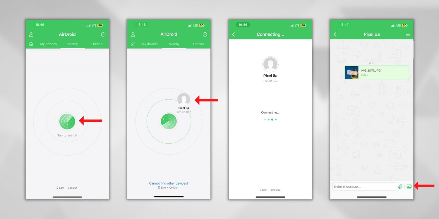 AirDroid permite a los usuarios transferir archivos entre dos teléfonos conectados a la misma red inalámbrica. Aunque la aplicación no es tan fluida como AirDrop, ofrece compatibilidad multiplataforma entre dispositivos iOS y Android. Además, convierte archivos HEIC a JPG antes de transferirlos. Los usuarios primero deberán instalar la aplicación tanto en el iPhone como en el teléfono Android. No importa qué ID de correo electrónico se use para crear una cuenta, siempre que ambos teléfonos estén conectados a la misma red Wi-Fi.