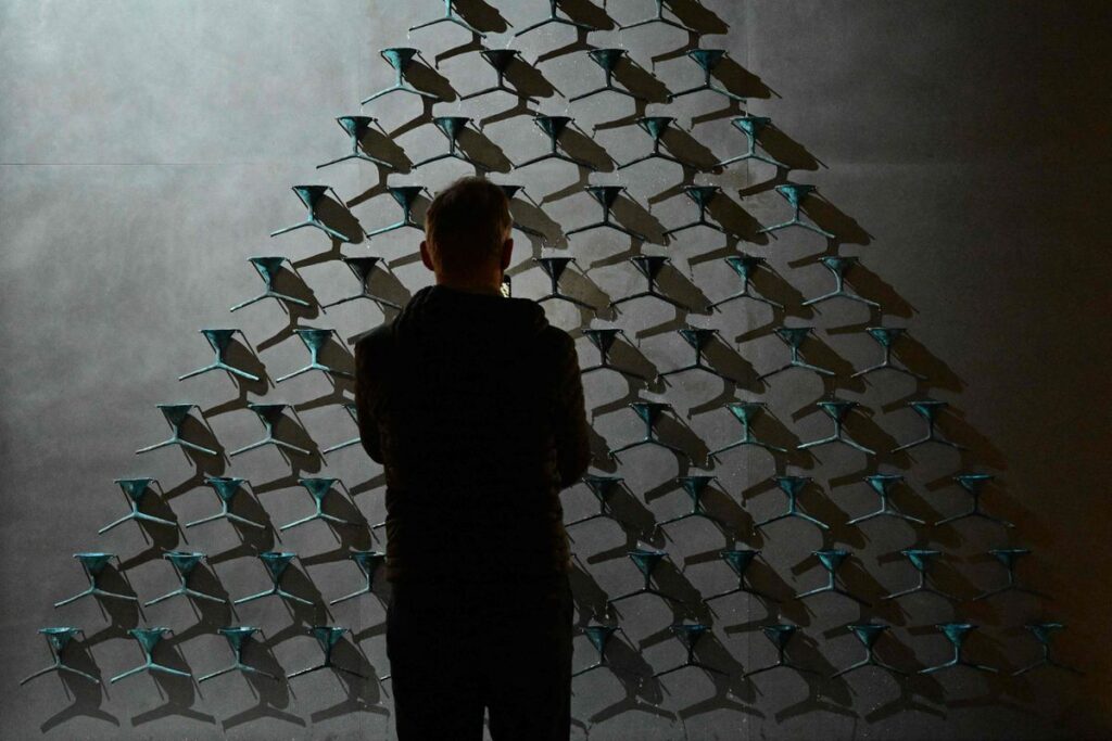 Puede que esta pirámide de embudos, dispuestos en ocho renglones alimentados por un chorro de agua que se va volviendo cada vez más irrisorio, no sea la obra más interesante de cuantas se han visto en la gran cita del arte contemporáneo, pero sí es una de las que más habrán dado de hablar. “Concebí esta obra en los noventa para hablar del agotamiento de la sociedad en Ucrania tras la caída de la Unión Soviética. En el contexto actual, me pareció que la metáfora seguía vigente, solo que en una versión más brutal y aterradora”, sostenía Makov en un teatro pegado al Arsenale, una de las dos sedes de la bienal, en el antiguo astillero de Venecia.