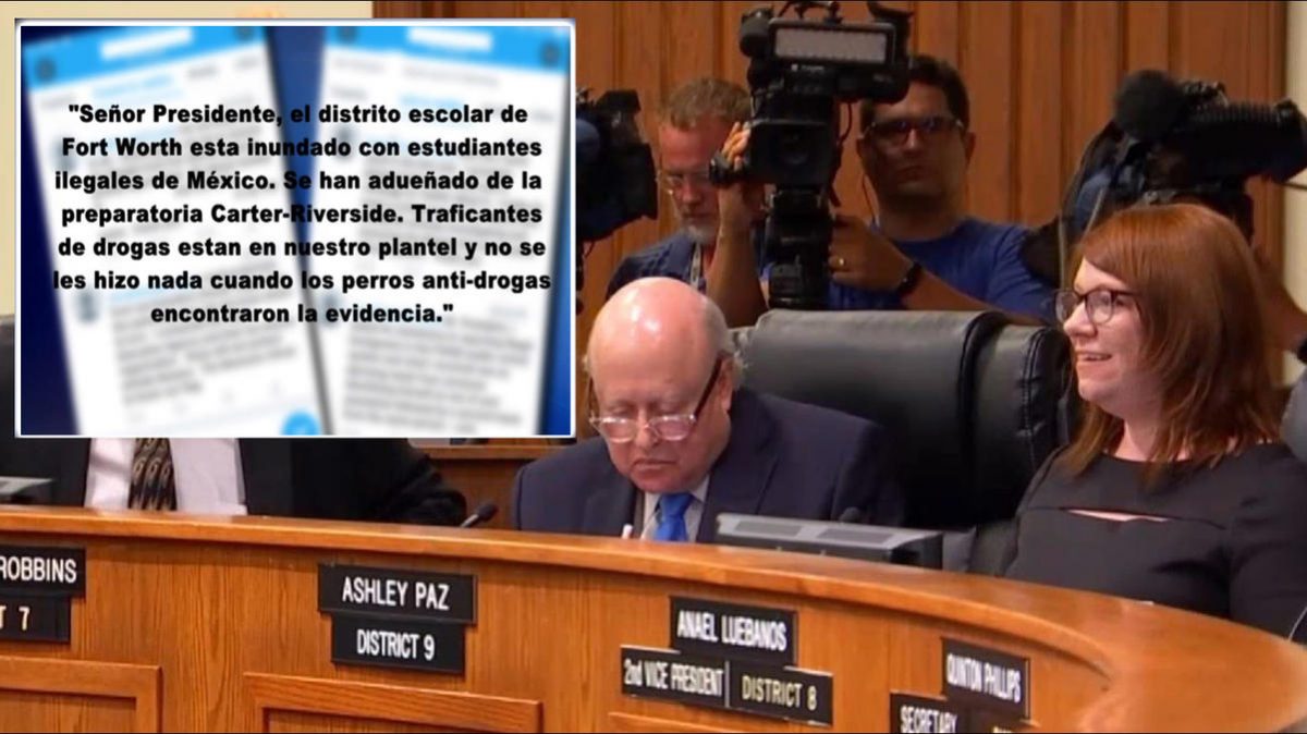 ”Señor Presidente, el distrito escolar de Fort Worth está inundado con estudiantes ilegales de México. Se han adueñado de la preparatoria Carter-Riverside. Traficantes de drogas están en nuestro plantel y no se les hizo nada cuando los perros antidrogas encontraron la evidencia”, indica uno de los tuits.