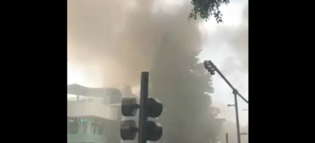 Los bomberos trabajan en el lugar para sofocar las llamas; restaurantes, bancos y una guardería fueron desalojados.