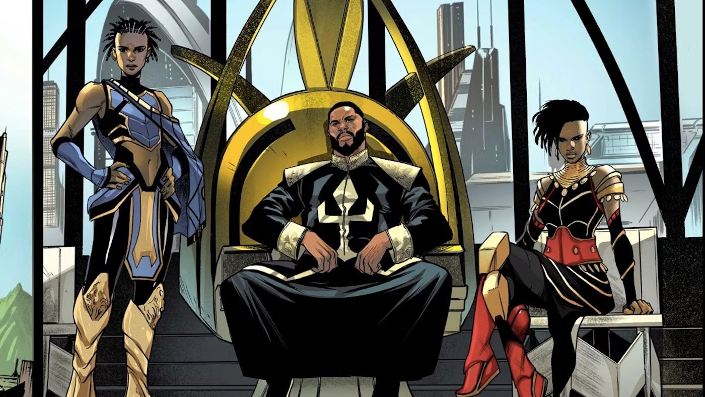 • T’Challa regresa como Rey de Wakanda con su nueva reina, Okoye, en Ultimate Black Panther #1.