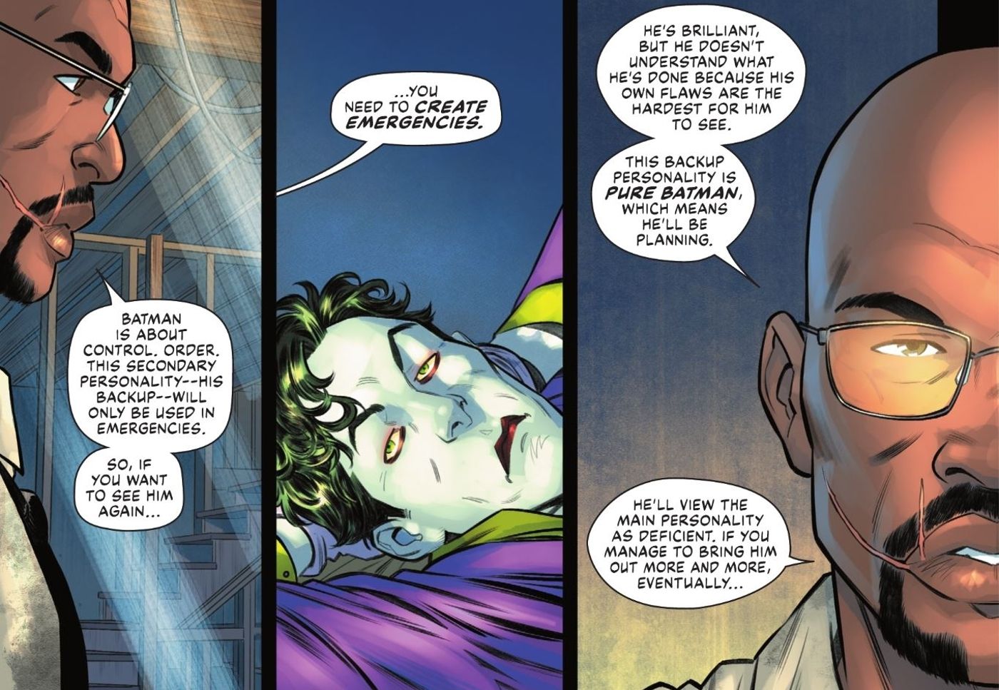 En Batman # 145 En la historia de respaldo “Doctor’s Orders” de Chip Zdarsky y Michele Bandini, Joker relata una de sus primeras peleas con Batman y la primera vez que Joker conoció al personaje de respaldo de Bruce, el Batman de Zur-En-Arrh. Joker cuenta lo emocionante que fue su encuentro con Zur-En-Arrh para un psiquiatra de Arkham Asylum que simplemente no parece entender qué es lo que el villano encuentra tan fascinante. Afortunadamente, Joker ha encarcelado a la única persona que sí entiende: El ex mentor de Joker y Batman, el Dr. Daniel Captio.