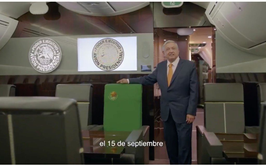 El presidente Andrés Manuel López Obrador al fin se subió al avión presidencial, pero para grabar un mensaje en el que promueve la venta de cachitos para la rifa que se hará el 15 de septiembre.