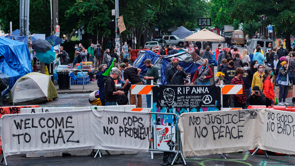 La ciudad registró disturbios y duros enfrentamientos con la policía, especialmente en Capitol Hill, ante lo que la alcaldesa ordenó a la Policía abandonar la comisaría ubicada en ese barrio y retirarse, lo que permitió de facto la creación de la “zona autónoma”.