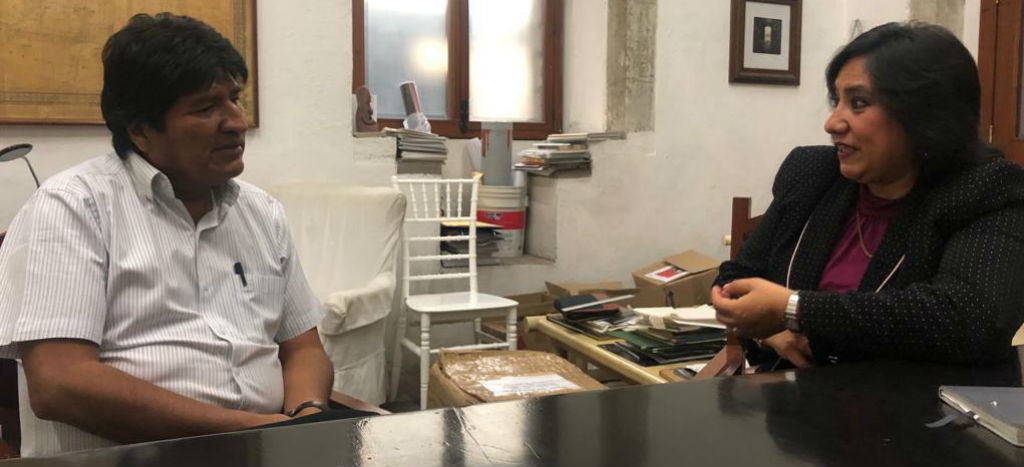 La titular de la Secretaría de Función Pública (SFP), Irma Eréndira Sandoval Ballesteros, invitó al renunciante presidente de Bolivia, Evo Morales Ayma, a compartir su experiencia de gobierno con los funcionarios de la Cuarta Transformación de la vida pública de México.