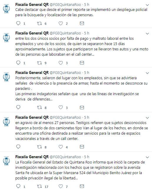 La Fiscalía General de Quintana Roo ya investiga el secuestro de estas 27 personas, de quienes hasta el momento se desconoce su paradero.