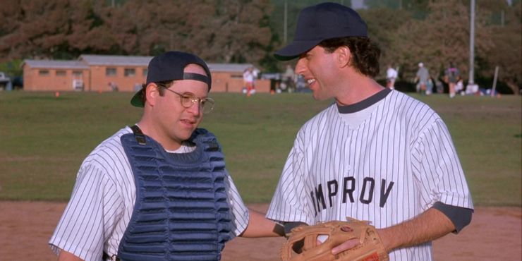 Jerry y George participan en un juego de sóftbol benéfico en el final de la temporada 6 “The Understudy”. El equipo del club de la comedia juega contra el equipo de un musical de Broadway con Bette Midler como su jugadora estrella.