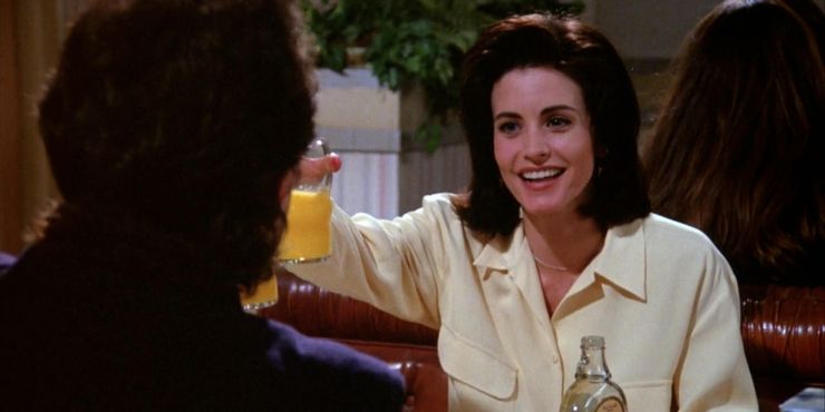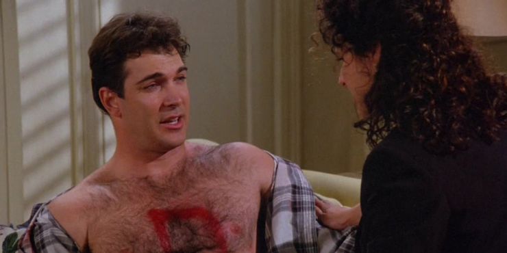 Cuando Rachel entra accidentalmente sobre un George desnudo, inmediatamente corre hacia la novia de George y le dice lo que vio, “encogimiento” y todo. Ella rompe con George, como resultado, y a Jerry no pareció importarle cuando terminó su propia relación.